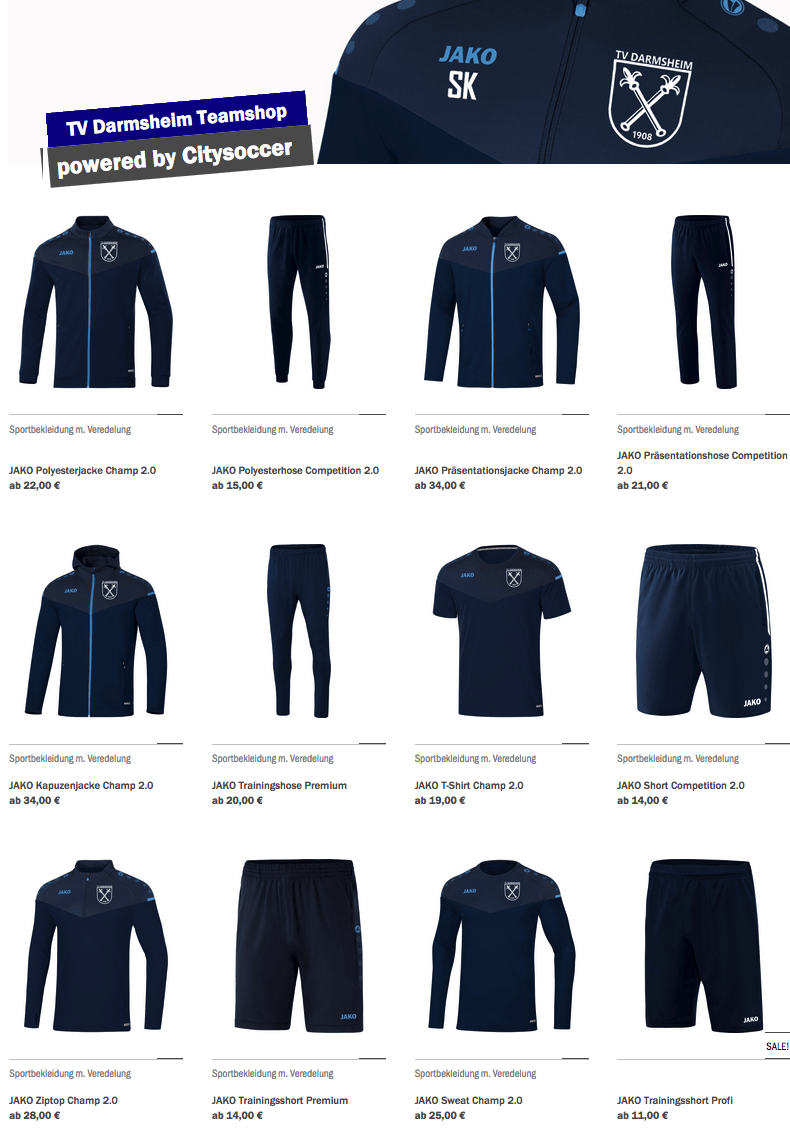 Bestellen Sie Ihre Teambekleidung und Equipment ganz einfach online. Innerhalb weniger Tage bekommen Sie Ihre Bestellung personalisiert und mit der jeweiligen Vereins-Beflockung nach Hause geschickt.